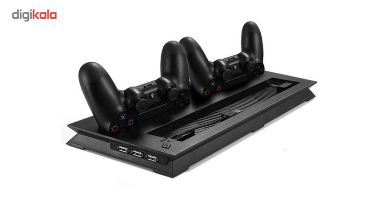 پایه نگهدارنده پلی استیشن 4 اسلیم مدل «Ultrathin Charging Heat Sink» وسیلهای چندکاره است که برای دارندگان PlayStation 4 Slim بسیار کارآمد واقع میشود. با استفاده از این پایه کنسول بازی به صورت عمودی روی زمین قرار گرفته و فنهایی که داخل این پایه قرار گرفتهاند آن را خنک میکنند. این امر باعث میشود که دمای کنسول در حد استاندارد باقی مانده و از آسیبدیدنش جلوگیری شود. دو محفظهی مخصوص برای قراردادن دستههای DualShock 4 کنار پایه تعبیه شده است تا بتوانید از این طریق دستههای بازی خود را شارژ کنید. این محصول از طریق کابل USB کوتاهی که به آن متصل شده است، منبعتغذیهی خود را از کنسول دریافت میکند. روی بدنه سه عدد پورت USB قرار گرفته است که راه دیگری برای شارژ دستهها به حساب میآید. درواقع میتوانید با تهیهی کابلهای جداگانه، سه دستهی بازی را به صورت همزمان شارژ کنید. فنها حین کارکردن صدای خاصی تولید نمیکنند. درنتیجه هنگام استفاده از این دستگاه برای کاربر مزاحمتی ایجاد نمیشود. استفاده از این محصول باعث میشود که بازی با کنسول با راحتی بیشتری انجام شود و گیمر از بازی با کنسول خود لذت بیشتری میبرد.