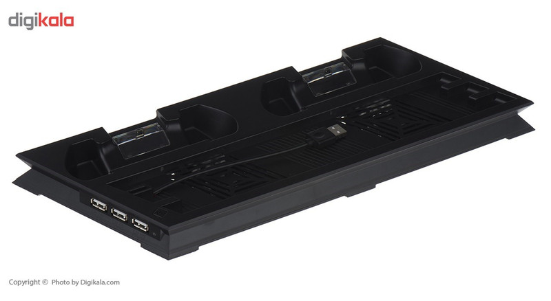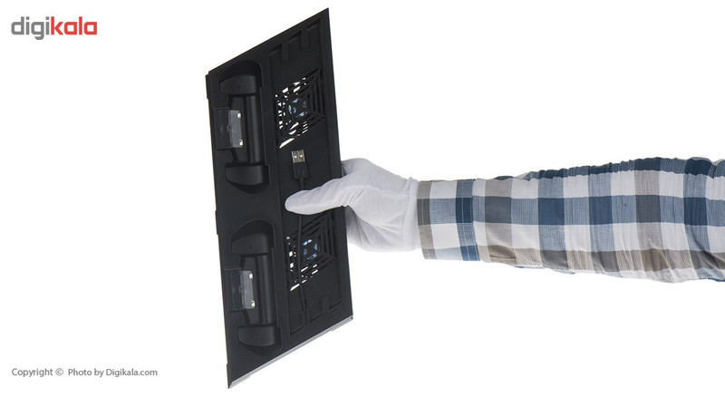 پایه نگهدارنده پلی استیشن 4 اسلیم مدل «Ultrathin Charging Heat Sink» وسیلهای چندکاره است که برای دارندگان PlayStation 4 Slim بسیار کارآمد واقع میشود. با استفاده از این پایه کنسول بازی به صورت عمودی روی زمین قرار گرفته و فنهایی که داخل این پایه قرار گرفتهاند آن را خنک میکنند. این امر باعث میشود که دمای کنسول در حد استاندارد باقی مانده و از آسیبدیدنش جلوگیری شود. دو محفظهی مخصوص برای قراردادن دستههای DualShock 4 کنار پایه تعبیه شده است تا بتوانید از این طریق دستههای بازی خود را شارژ کنید. این محصول از طریق کابل USB کوتاهی که به آن متصل شده است، منبعتغذیهی خود را از کنسول دریافت میکند. روی بدنه سه عدد پورت USB قرار گرفته است که راه دیگری برای شارژ دستهها به حساب میآید. درواقع میتوانید با تهیهی کابلهای جداگانه، سه دستهی بازی را به صورت همزمان شارژ کنید. فنها حین کارکردن صدای خاصی تولید نمیکنند. درنتیجه هنگام استفاده از این دستگاه برای کاربر مزاحمتی ایجاد نمیشود. استفاده از این محصول باعث میشود که بازی با کنسول با راحتی بیشتری انجام شود و گیمر از بازی با کنسول خود لذت بیشتری میبرد.