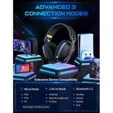 با هدست بازی بی سیم وارد قلمرو جدیدی از برتری شنوایی شوید. و خود را درمحیطی سه بعدی غرق کنید. هدستهای بیسیم PS5 از فناوری 2.4 گیگاهرتز برای انتقال بیسیم با تأخیر کم استفاده میکنند و انتقال سریعتری بین محیطهای داخلی و خارجی و تغییر از 2.4 گیگاهرتز به بلوتوث ارائه میدهند. از صدای کم تأخیر در رایانه شخصی با USB 2.4 گیگاهرتز پشتیبانی می کند. از جزئیات ظریف گرفته تا عکسهای تغییردهنده بازی، فناوری بیسیم 2.4G هدست کامپیوتر بیسیم هر صدا را ضبط میکند و شما را کاملاً غرق میکند. چه در موسیقی غوطه ور باشید و چه به مدت طولانی بازی کنید، این هدست در تمام مدت طول روز کار خواهد کرد. پس بدون نگرانی برای ساعت ها بازی کنید و وقتی هشدار کم شدن باتری داد شارژ کنید که درعرض 2 الی 3 ساعت شارژ میشود