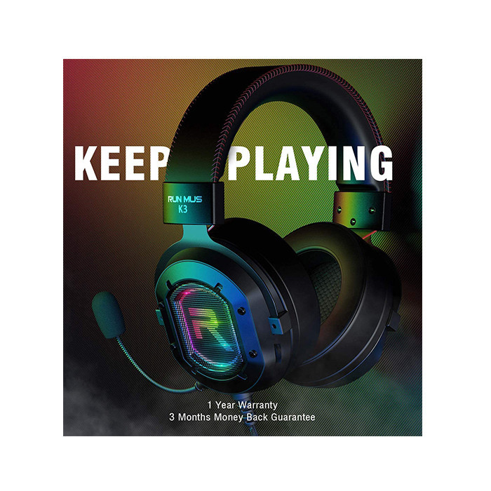 هدست گیمینگ RGB رانموس مدل K3m یکی ار بهتری هدست های 7٫1 کانال برند رانموس میباشد. LEDهای RGB جلوه بسیار چشم نوازی به این هدست گیمینگ بخشیده است. قطعا هدست گیمینگ RUNMUS K3 میتواند یکی از انتخاب های خوب گیمرها باشد. 7٫1 کاناله بودن از دیگر ویژگی های خوب این هدست گیمینگ میباشد که در تعیین موقیت و صدای پای دشمن در بازی میباشد. فناوری صدای فراگیر 7٫1 کانال همراه با میکروفون حذف کننده نویز هدست RUNMUS K3-RGB باعث می شود احساس کنید در واقع در بازی هستید. هنگام انجام بازی های شوتینگ می توانید وقتی دشمنان شما در پشت سر شما حرکت میکنند صدا را نیز در واقع از پشت سرتان حس کنید. برای بازی های زامبی صدای پا بسیار مهم میباشد زیرا شما می توانید مکان زامبی ها و نزدیکی آنها را بشنوید. هدست RUNMUS K3 مناسب و راحت برای استفاده این هدست کاملاً مناسب و راحت است. این مدل به شدت در اطراف گوش و بالای هدست نرم و راحت می باشد. ساخته شده از کوسن های نرم و قابل تنفس و پوشیدن آن برای مدت طولانی بسیار راحت است. وضوح صدای بالا درایورهای 50 میلی متری این هدست گیمینگ باعش میشود صدای بیرون از بین برود تا شما صدای بازی را با وضوح بالا بشنوید. همچنین میکروفون ضد نویز باعث میشود صدای شما با وضوح بالا به هم تیمی هایتان برسد. طراحی RGB زیبا وقتی جک USB را وصل می کنید ، چراغ جذاب LED روشن می شود. LEDهای RGB در هر دو طرف جلوه ی خوبی به هدست RUNMUS K3 می دهند و آن را به تجربه ای زیبا در بازی تبدیل می کند. سازگاری با پلتفرم های مختلف هدست مخصوص بازی RUNMUS K3 از جک 3٫ 5 میلی متری استفاده می کند، بنابراین به عنوان یک هدست بازی کراس پلتفرم همه کاره است.